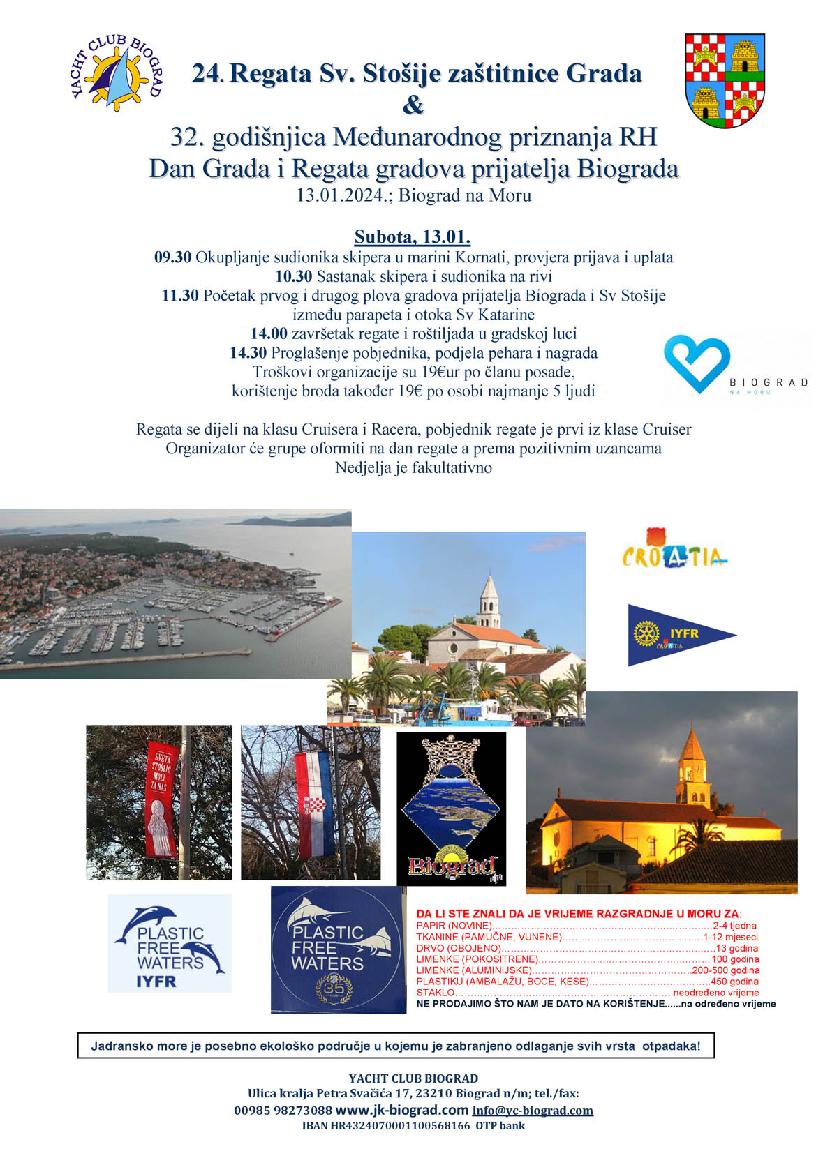 Novosti/Regate/24. Regata Sv. Stošije zaštitnice Grada 13.01.2024. 24. Regata Sv. Stošije zaštitnice Grada 13.01.2024. Dokumenti: Program i objava regate.pdf Program i objava regate.doc Fotografije: