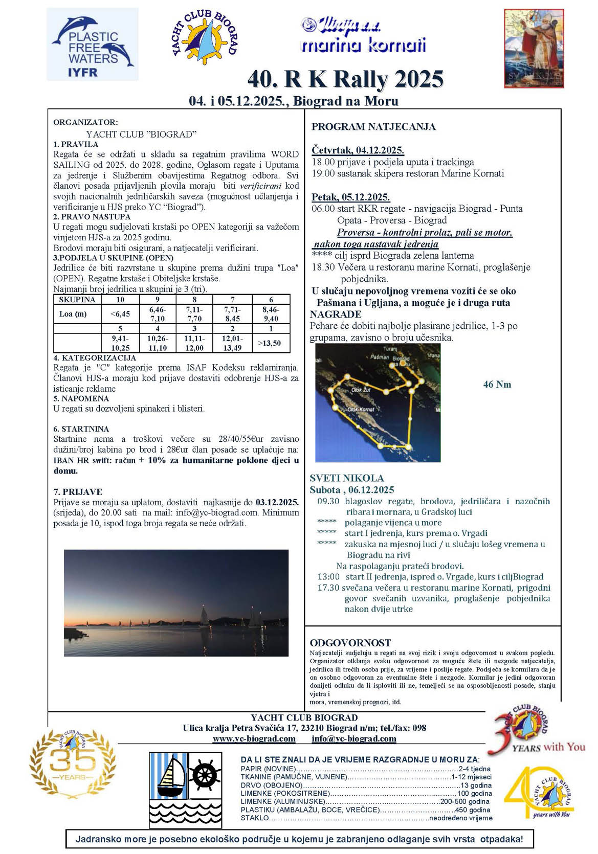 Novosti/Regate/40. R K Rally 2025 04.-05.12.2025. 40. R K Rally 2025 04.-05.12.2025. Dokumenti: Program i objava regate.pdf Program i objava regate.doc Fotografije: